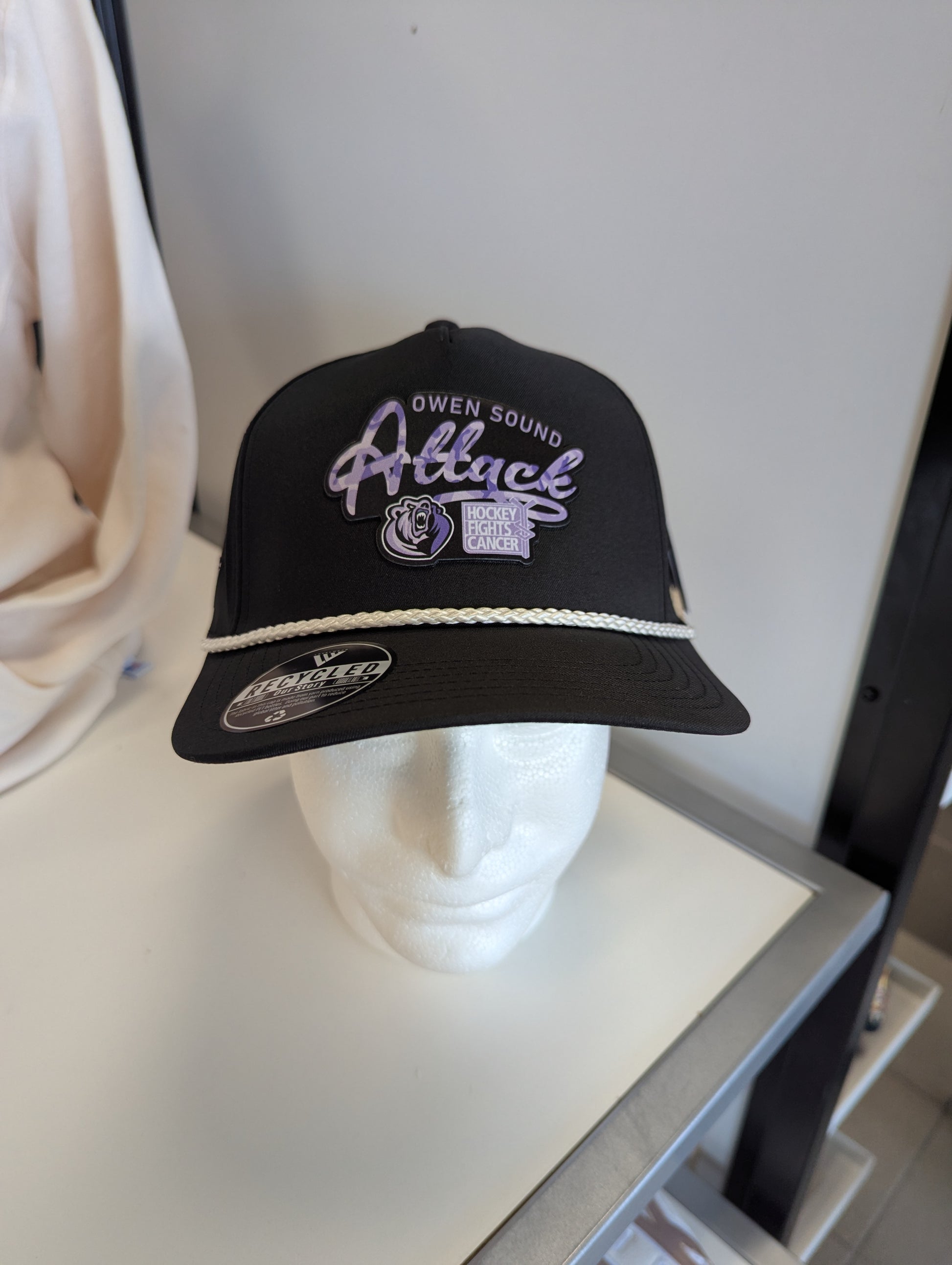 All proceeds from the sale of these hats goes to the Attack's Hockey Fights Cancer fundraising campaign supporting the local wheels of hope program.