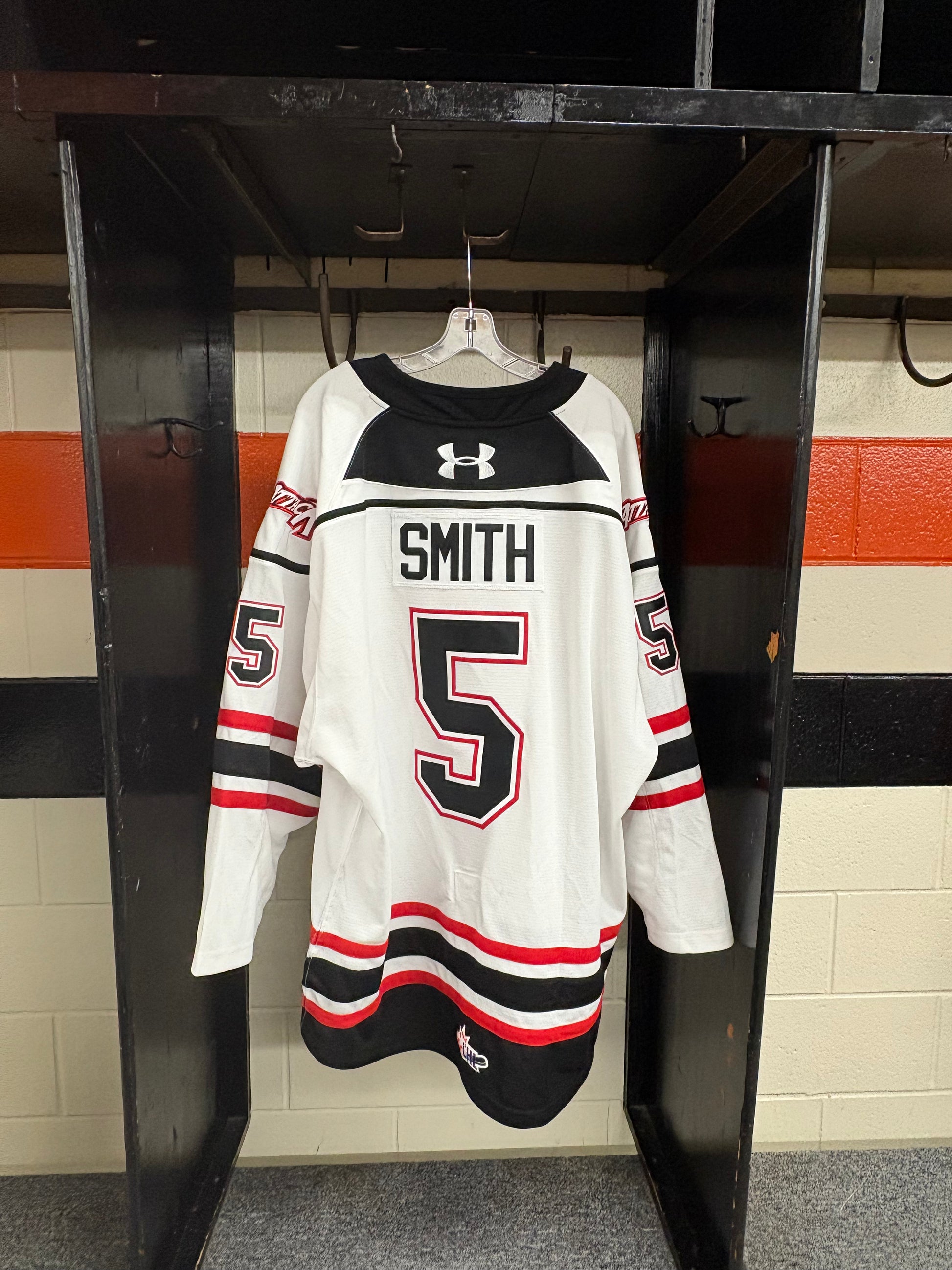 Game Issued and worn Owen Sound Attack UA Jerseys from the 2025-26 season. Jerseys come in numerical sizing, the size letter in the bracket beside the number coincides with the closest size comparison in our replica line. Worn status is in item title.